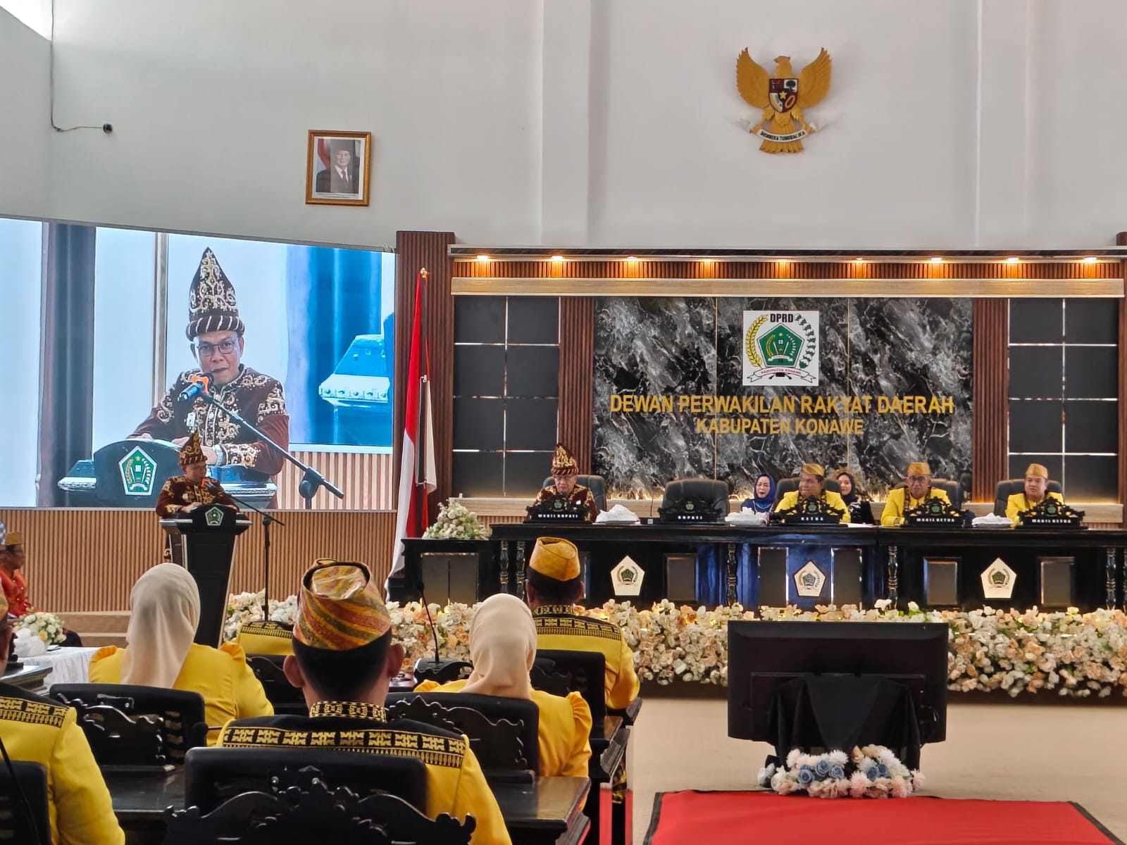 LINTASSULTRA.COM | KONAWE – Bupati Konawe, Yusran Akbar, memaparkan berbagai pencapaian pembangunan daerah sepanjang tahun 2025 dalam Rapat Paripurna DPRD Konawe memperingati HUT ke-66 Kabupaten Konawe yang berlangsung di Gedung Paripurna DPRD Konawe, Selasa (3/3/2026).