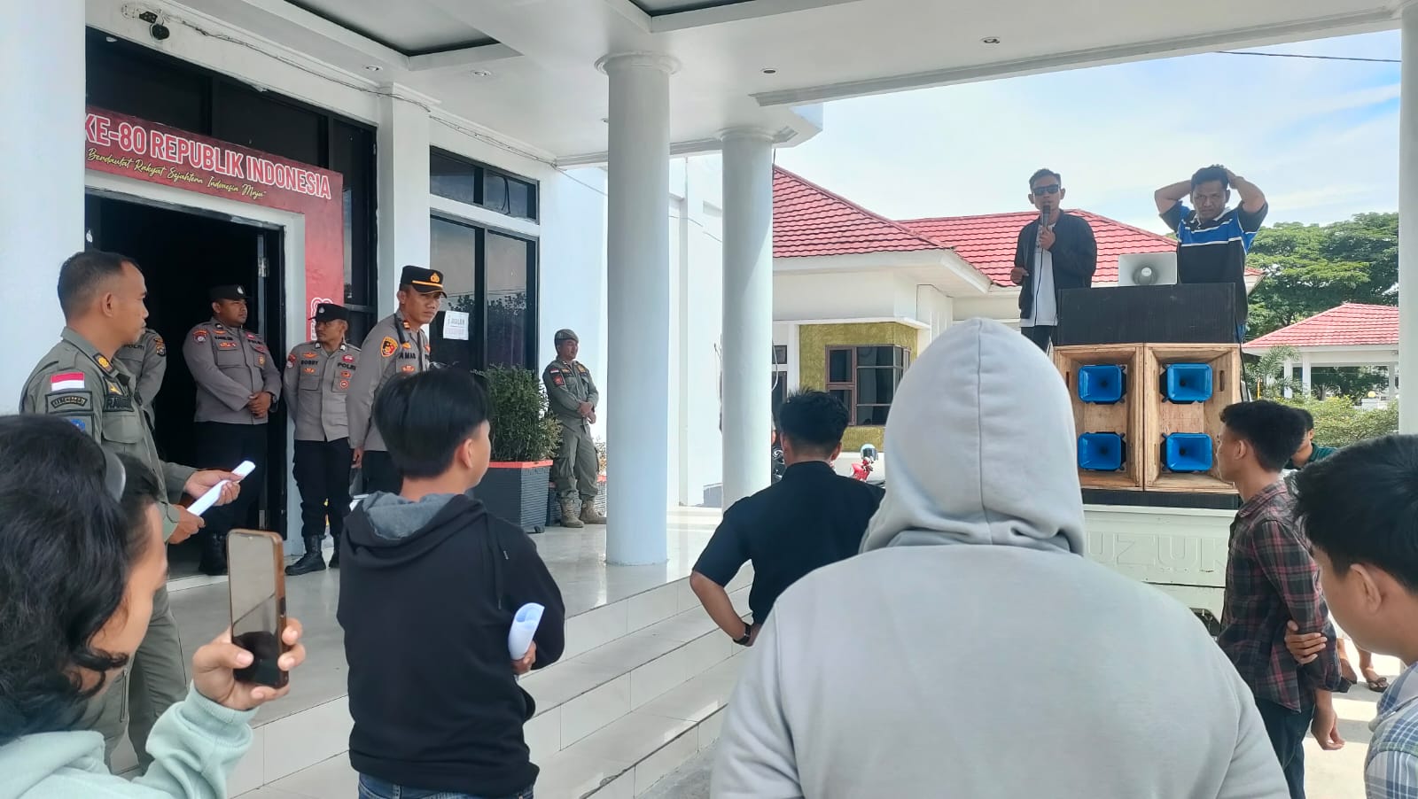 Koordinator Lapangan, Irsan Pagala, dalam orasinya secara tegas mendesak Bupati Konawe untuk mencopot MA dari jabatannya. Ia menyebut bukti dugaan keterlibatan MA sangat jelas terekam dalam sebuah video.