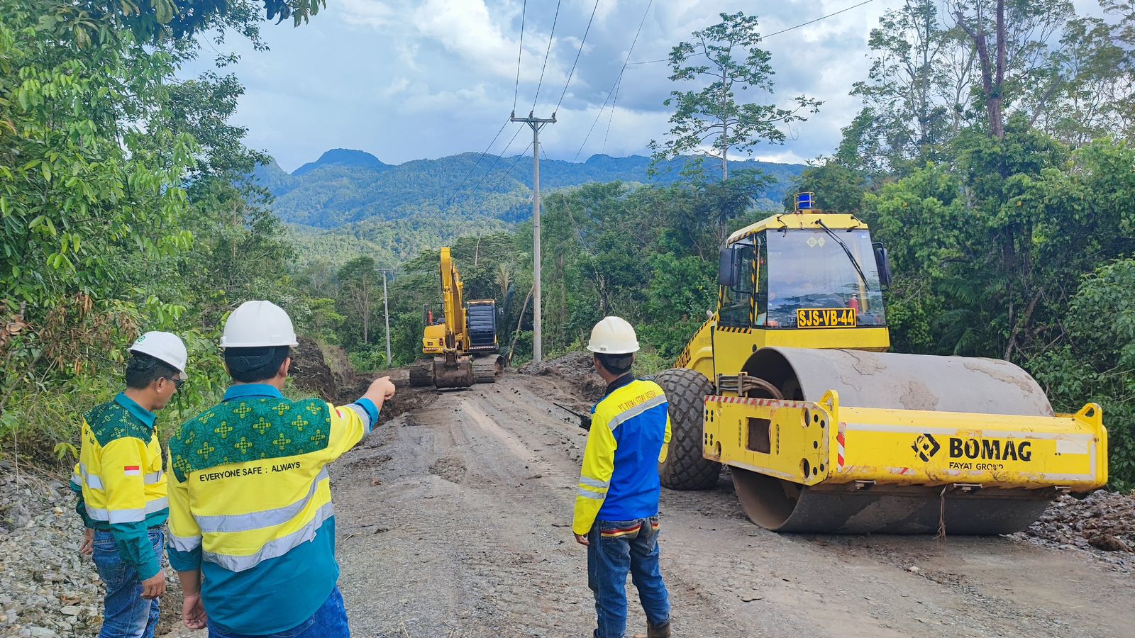 Tahapan pengerjaan diawali dengan asesmen teknis menyeluruh, mencakup pembukaan lahan, pembangunan jembatan, tanggul jalan, serta penguatan struktur agar jalan layak dilalui kendaraan. Jalan dibangun dengan lebar rata-rata lima meter, menggunakan material agregat-quarry setebal 60 sentimeter yang dipadatkan dengan alat berat compactor.