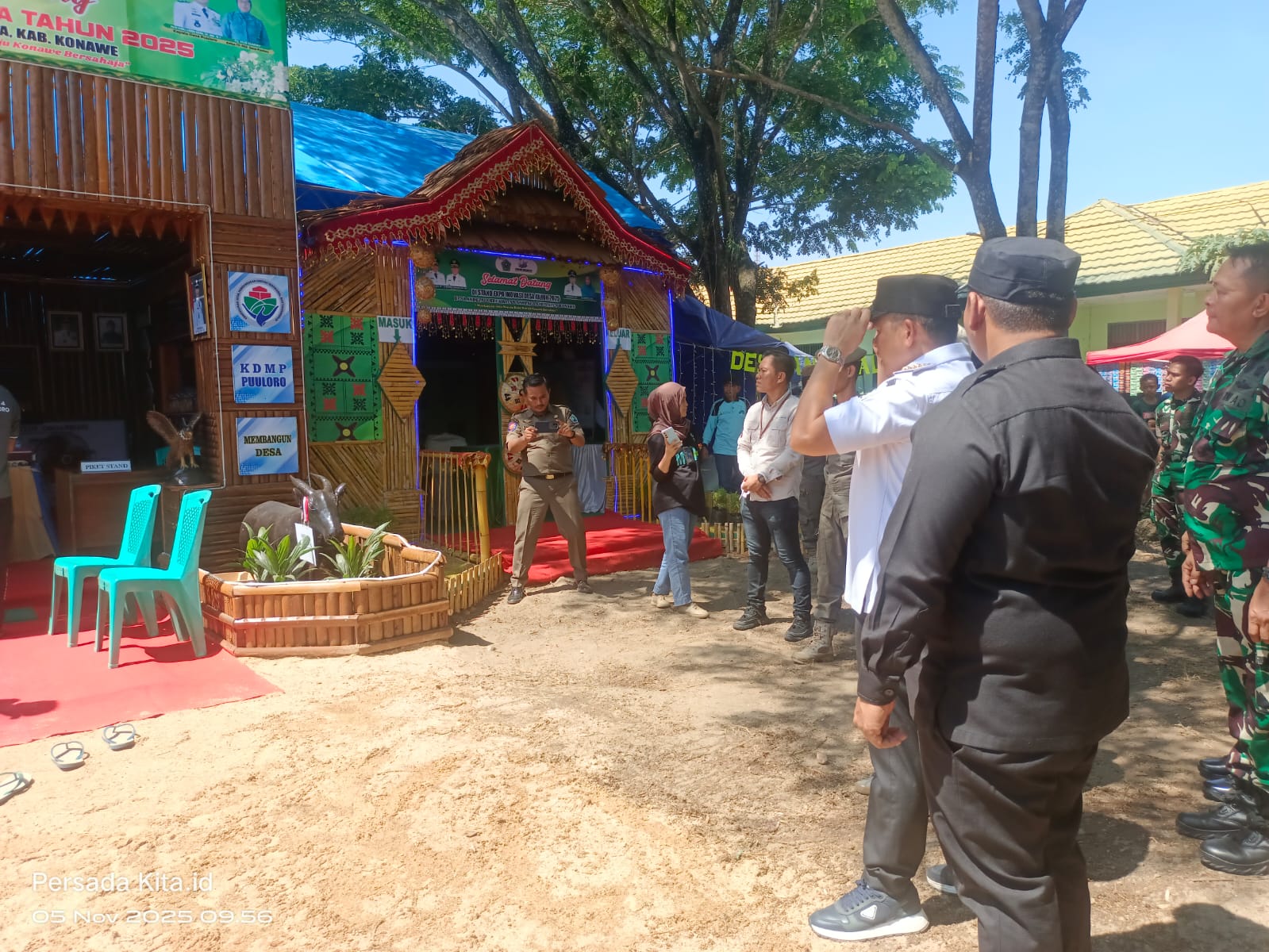 Tampak mendampingi Bupati, seluruh unsur Forum Koordinasi Pimpinan Daerah (Forkopimda) Kabupaten Konawe beserta Ketua DPRD, I Made Asmaya. Kehadiran mereka bukan sekadar formalitas, melainkan blusukan last minute yang penuh makna. Dengan langkah pasti, Bupati Yusran menyambangi satu per satu stan, berdialog akrab dengan para Kepala Desa, dan mengecek kesiapan presentasi potensi unggulan dari setiap desa.